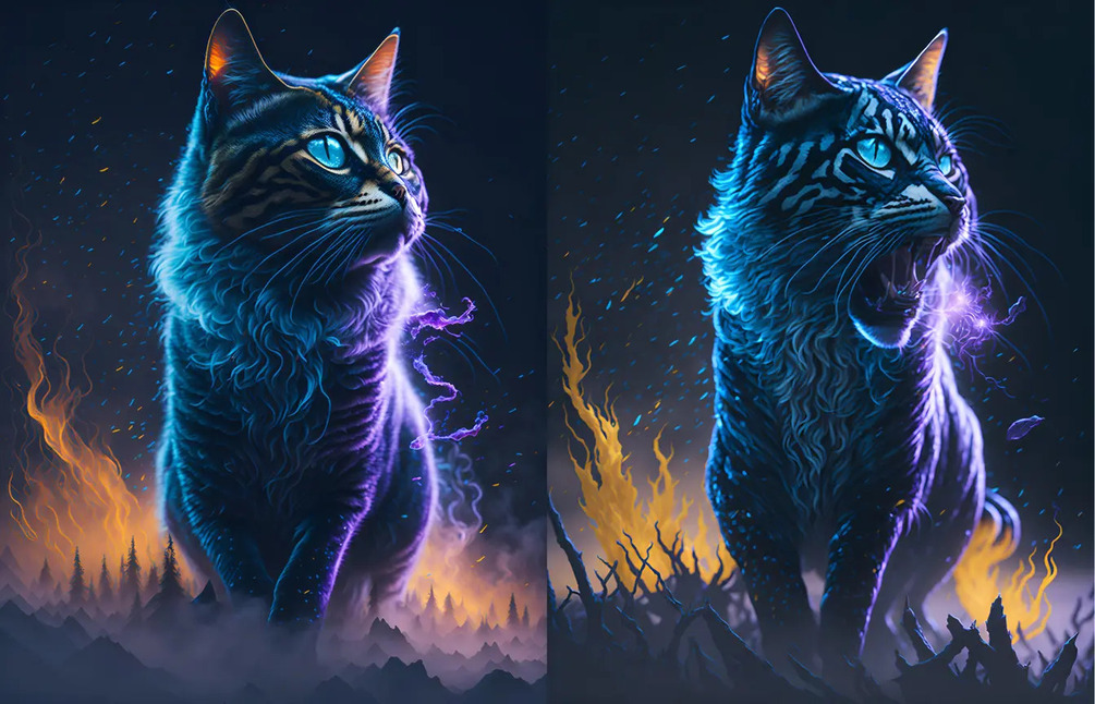 The gigantic cat, always watches over you, over pines, mountains and clouds. Their energy field emits powerful particles and the mystical electrical fire keeps the attackers away!